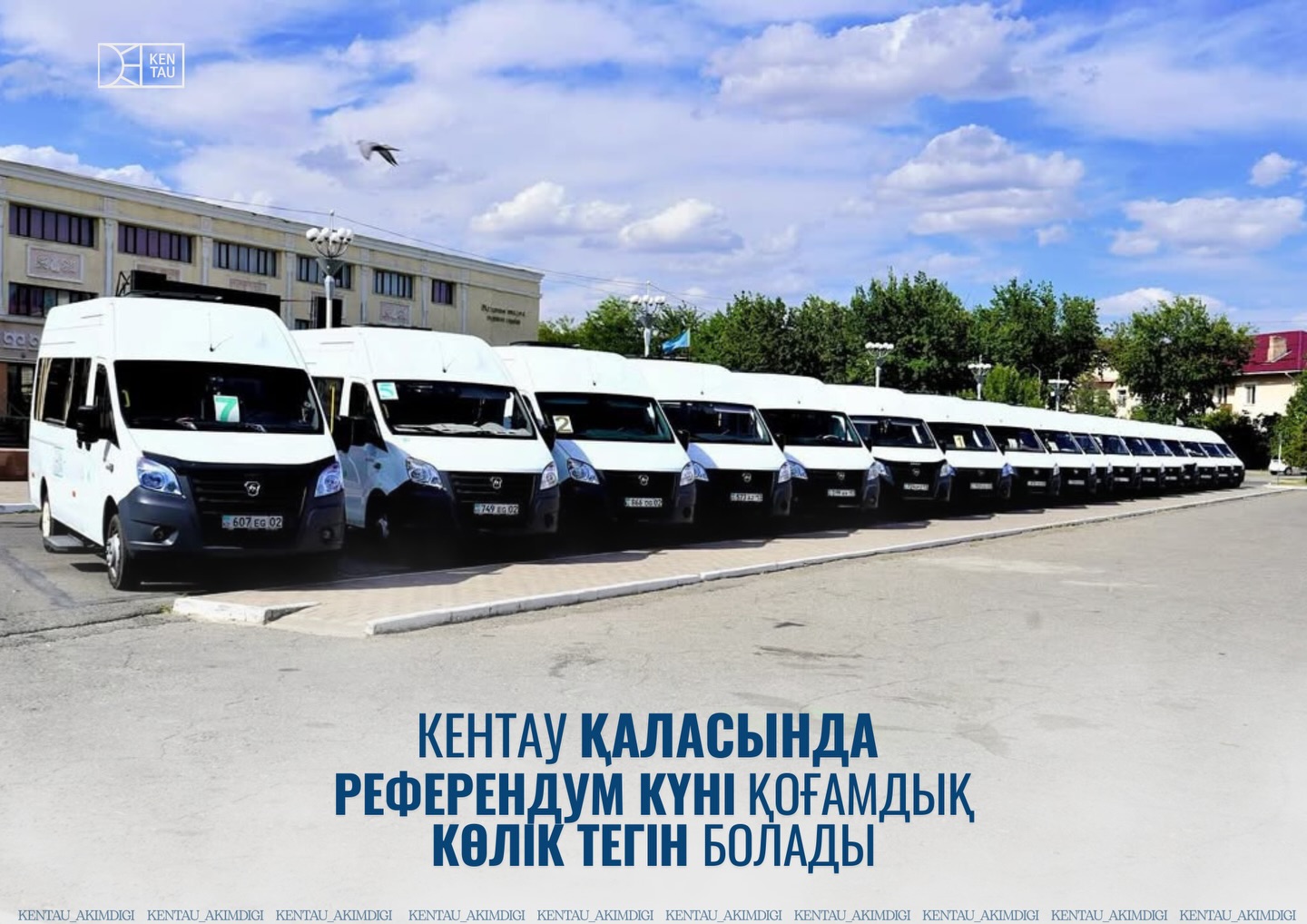 15 наурыз күні өтетін республикалық референдум аясында Кентау қаласының тұрғындары үшін қоғамдық көлікте тегін жол жүру ұйымдастырылады.