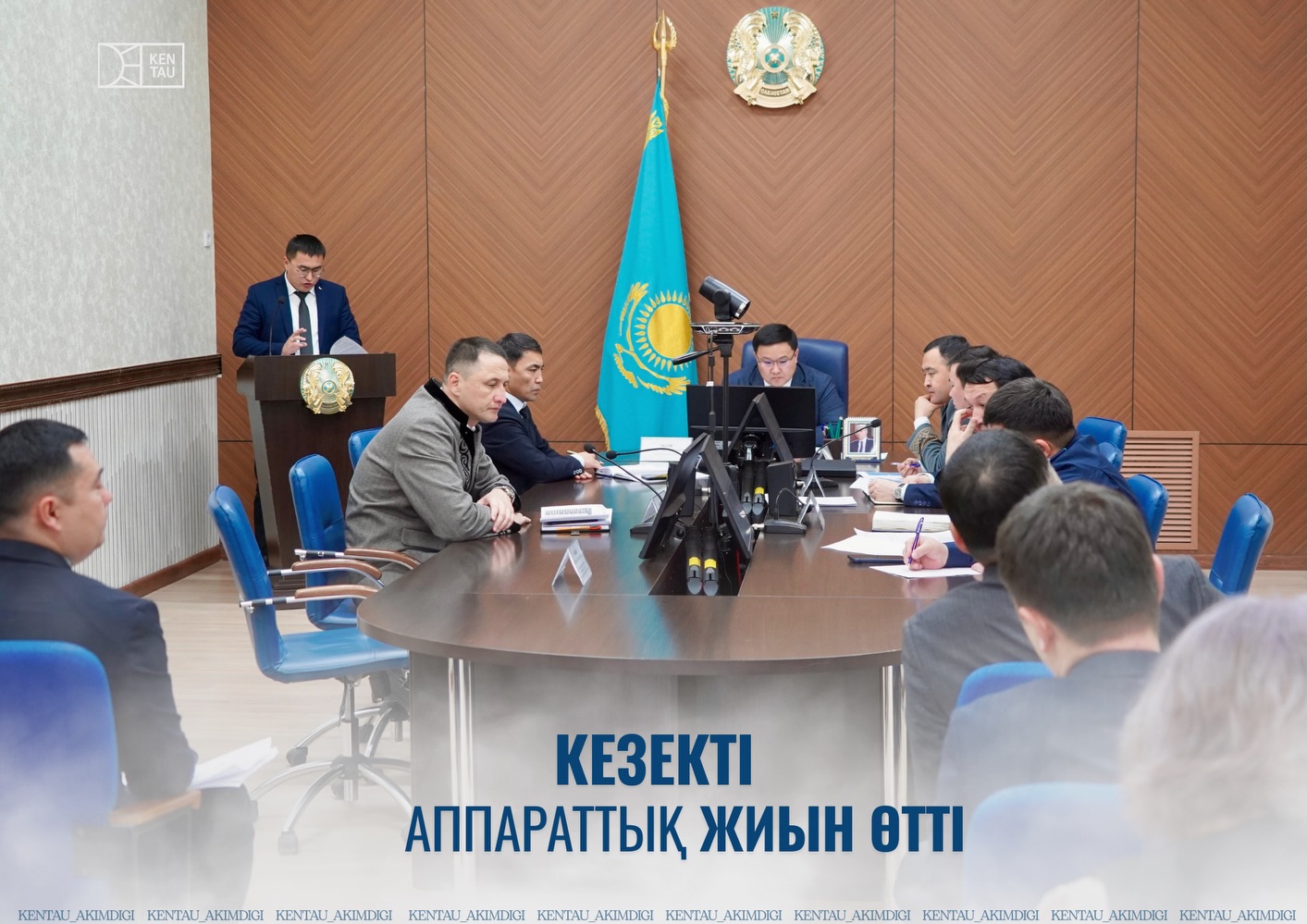 Кентау қаласының әкімі Жандос Тасовтың төрағалығымен кезекті аппараттық жиын өтті. Жиналысқа қала әкімінің орынбасарлары, аппарат басшысы, бөлім және мекеме басшылары, сондай-ақ ауыл әкімдері қатысты.
