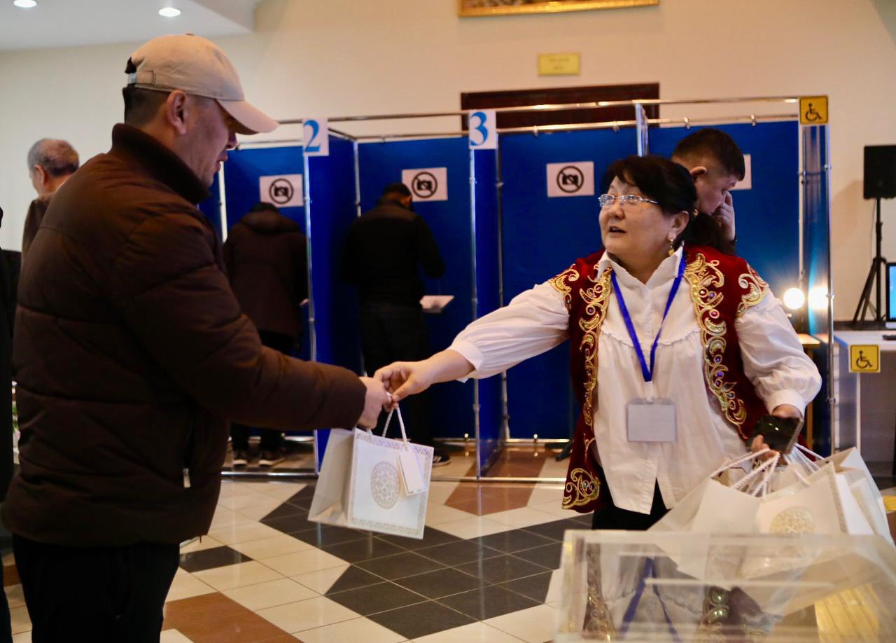 Сайлау учаскелеріне алғаш келген тұрғындарға арнайы сыйлықтар табысталып, олардың белсенді азаматтық ұстанымы мен ел болашағына бейжай қарамайтындығы үшін алғыс білдірілді.