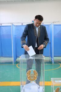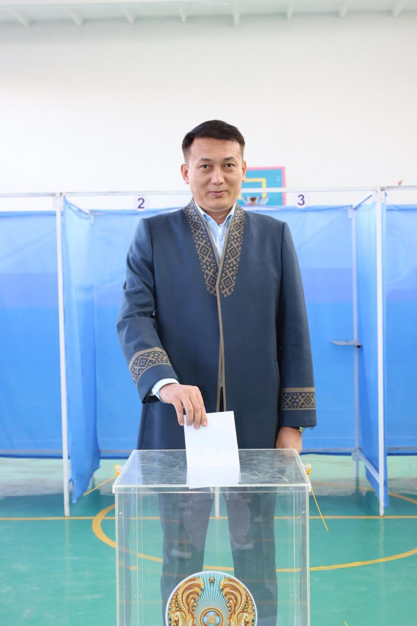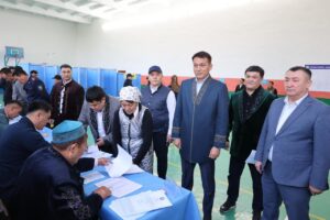 Учаскеде дауыс беру процесінің ұйымдастырылу барысымен танысып, комиссия мүшелерінің жұмысына сәттілік тіледім. Қазіргі уақытта аудан аумағындағы барлық референдум учаскелерінде дауыс беру науқаны заң талаптарына сәйкес, қалыпты жағдайда өтіп жатыр.