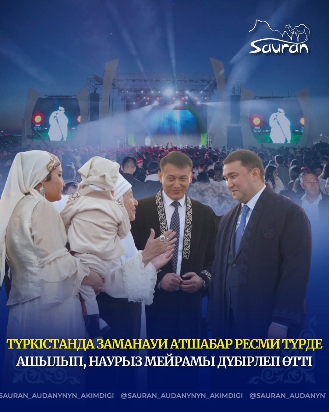 Түркістан төрінде Ұлыстың ұлы күні – Наурыз мерекесі ерекше сән-салтанатымен аталып өтті. Қаладағы жаңа, заманауи атшабар ресми түрде ашылып, бұл тарихи сәт кең көлемді мәдени-көпшілік іс-шарамен ұштасты.