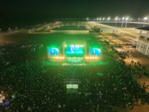 Мерекелік бағдарлама аясында Сауран, Ордабасы және Созақ аудандарының өнерпаздары сахна төріне шығып, көпшілікке көтеріңкі көңіл-күй сыйлады. Әр ауданның шығармашылық ұжымдары ұлттық ән-күй мен заманауи туындыларды үйлестіре отырып, көрермен ықыласына бөленді. Халық әндері шырқалып, термелер орындалып, мың бұралған билер мерекенің көркін аша түсті.