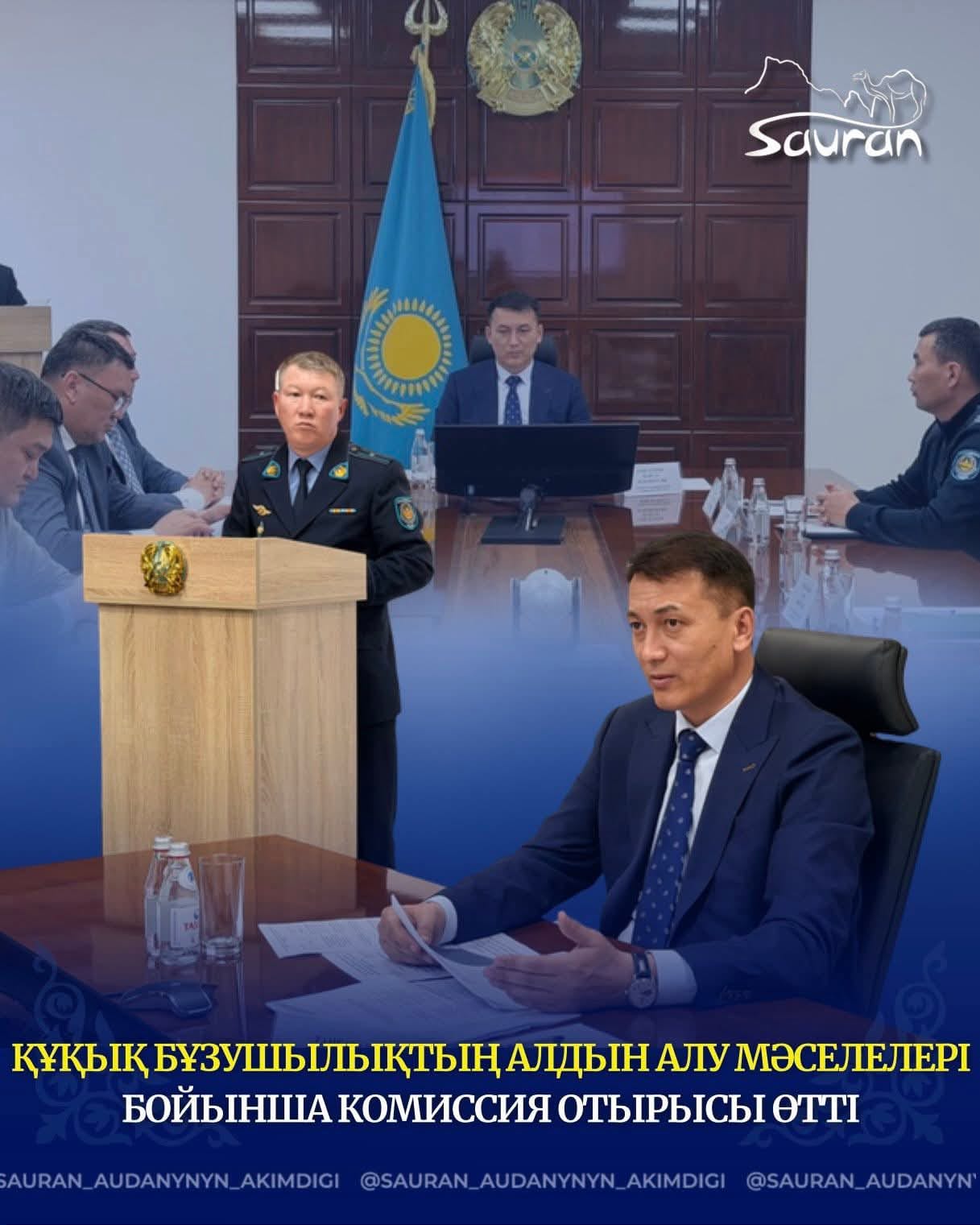 Сауран ауданы әкімдігі аппаратының мәжіліс залында құқық бұзушылықтың алдын алу мәселелері жөніндегі ведомствоаралық комиссия отырысы өткізілді. Мәжілістің мақсаты аудан аумағында қоғамдық тәртіпті қамтамасыз ету, қылмыстық жазасын өтеп шыққан тұлғаларды әлеуметтік қолдау, ұрлық қылмыстарының алдын алу шараларын үйлестіру.