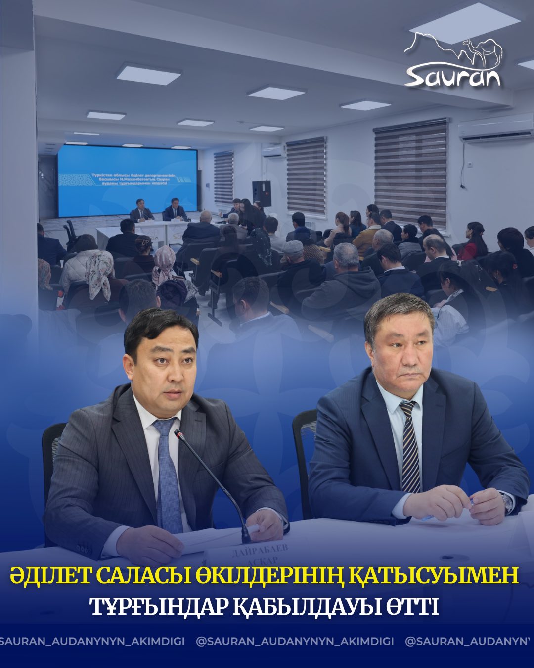 Бүгін Әділет органдарының қызметіне қатысты проблемалық мәселелерді шешу мақсатында арнайы мәжіліс өтті. Жиынды Сауран ауданы әкімі аппаратының басшысы міндетін атқарушы Асқар Дайрабаев ашып, жүргізді. Ол өз сөзінде әділет саласының халықпен тікелей жұмыс істейтін маңызды құрылым екенін атап өтіп, тұрғындар тарапынан көтеріліп жүрген өзекті мәселелерді ашық талқылаудың маңыздылығына тоқталды.